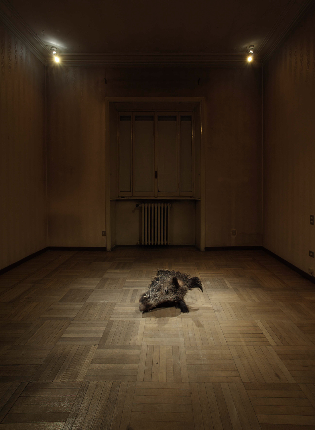 Tu non mi conosci, 2012, taxidermy boars head, resin, quartz crystal, h36x53x43cm.